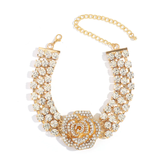 A beautifully detailed choker with a bold, heavy build. Adorned with sparkling rhinestones and floral resin accents, it delivers a perfect blend of strength, style, and sophistication.