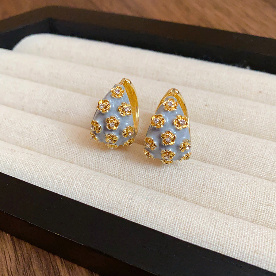 French Style Drip Gold & Grey Earrings
