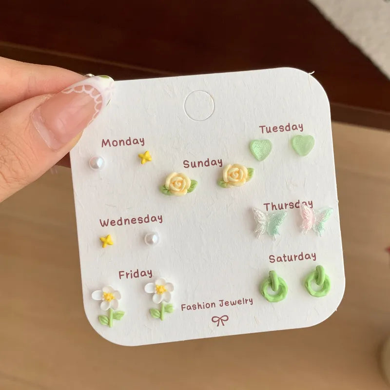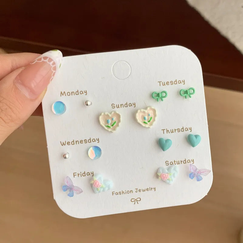 Designed with 925 silver needles, these earrings are gentle on the ears and perfect for daily wear. The mix of cute and elegant styles makes this set an ideal choice for students and young women who love expressing their personality through fashion.